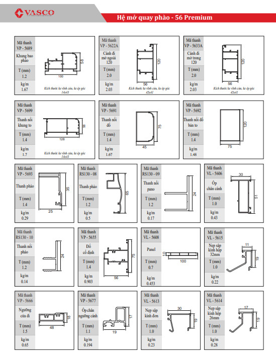 Hệ mở quay phào vasco - 56 Premium