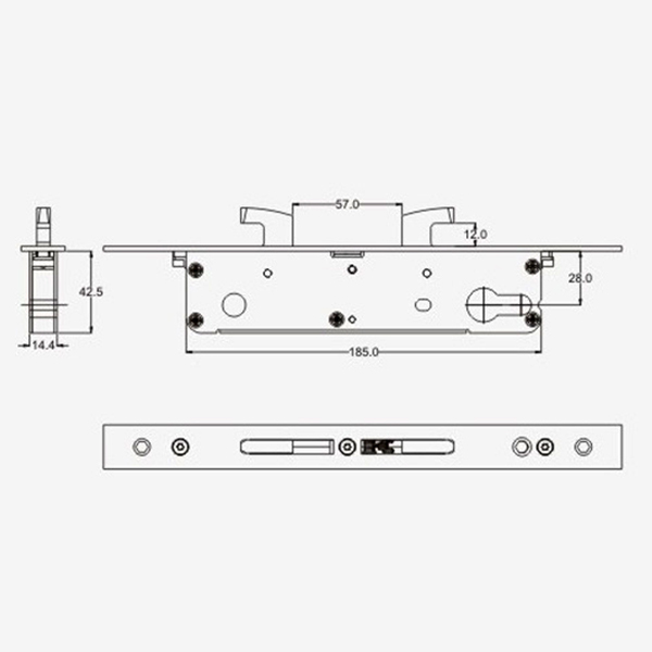 + SDL: Thân khóa cửa đi mở lùa móc đôi.
