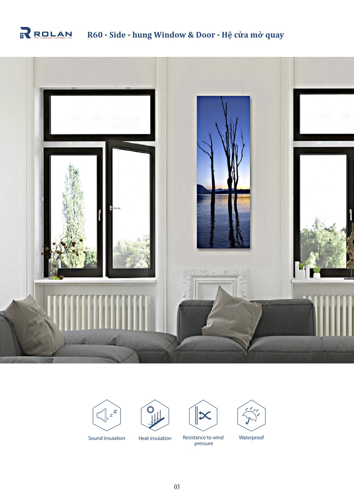 Rolan European Aluminium là thương hiệu sản phẩm nhôm định hình cao cấp thiết kế theo tiêu chuẩn Châu Âu, với các hệ nhôm R60 - hệ cửa mở quay, R80 hệ cửa mở lùa, R120 hệ cửa mở lùa bản lớn, RX73 Hệ cửa xếp trượt, RS130 - Hệ cửa mở quay kèm lưới, Hệ RV65 - Hệ vách mặt dựng