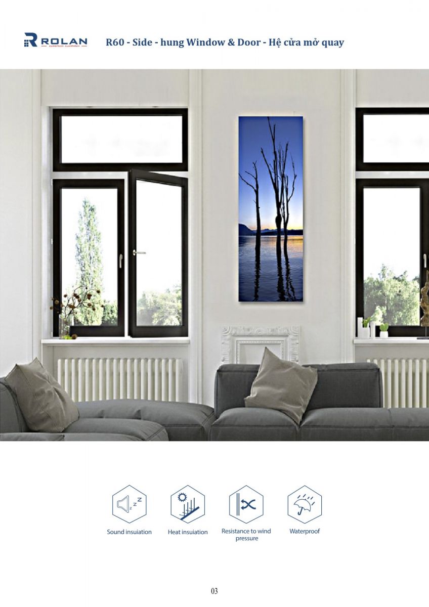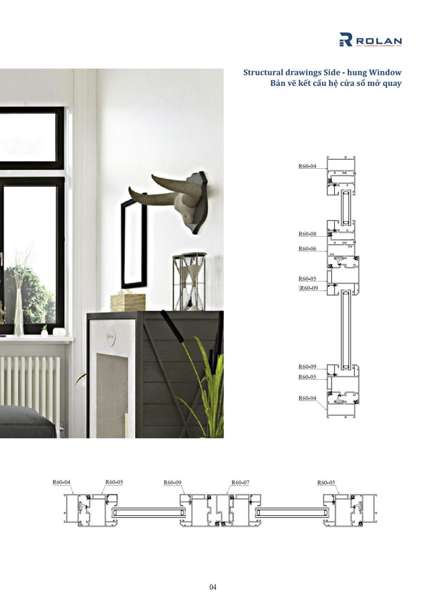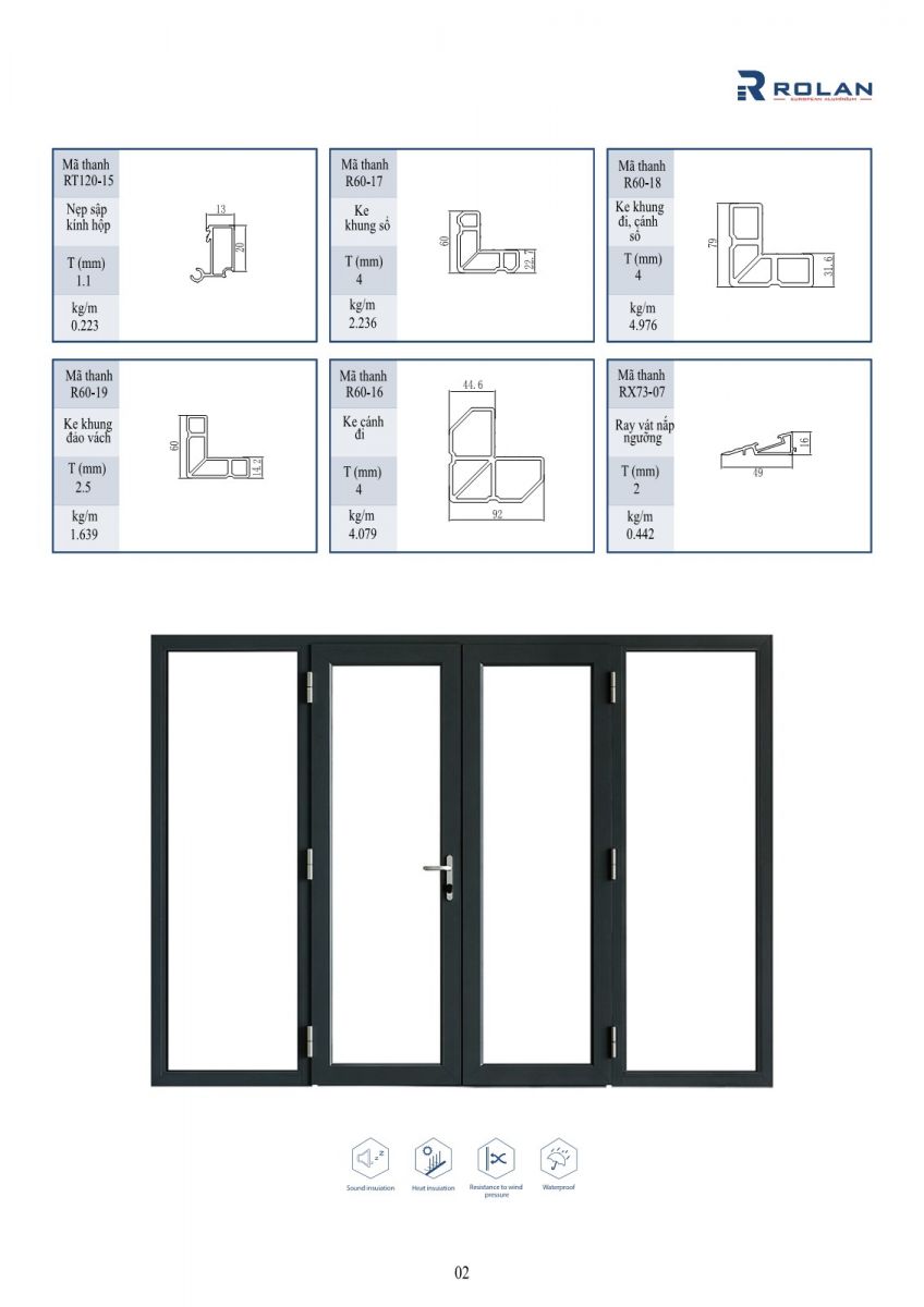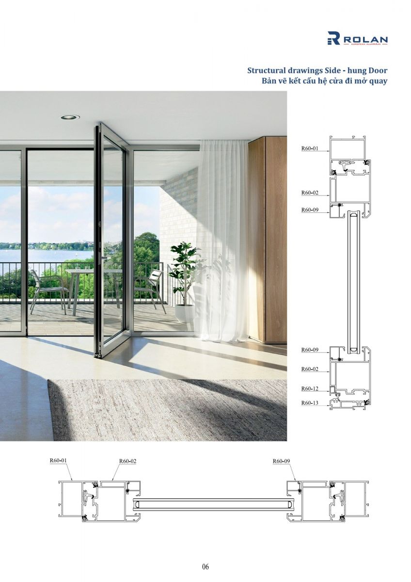 R60 - Hệ cửa đi mở quay nhôm Rolan