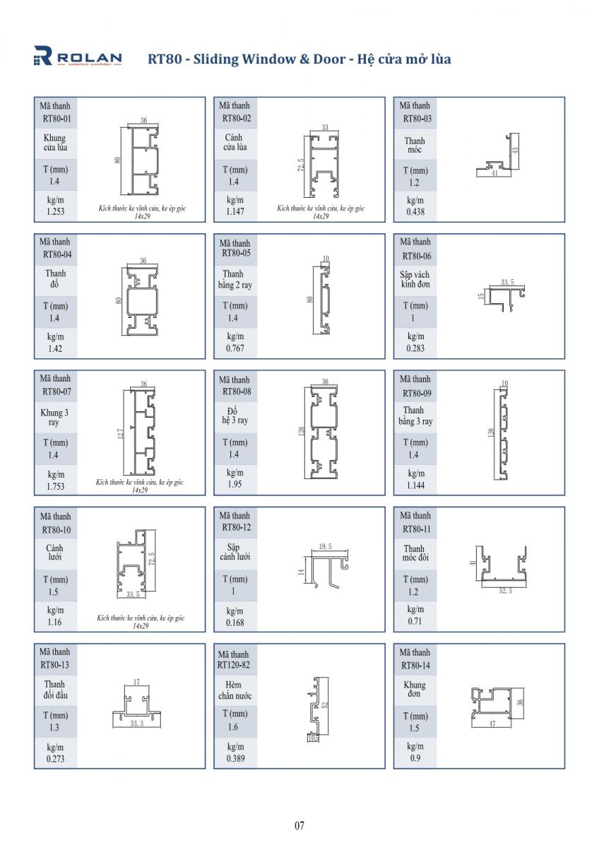 Các bạn có thể tham khảo thêm hệ khác của Rolan European Aluminium: