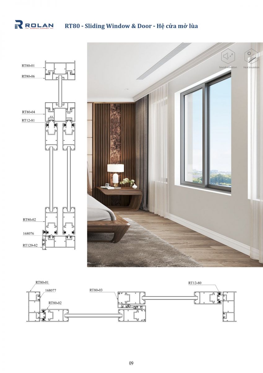 R80 - Hệ cửa mở lùa nhôm Rolan