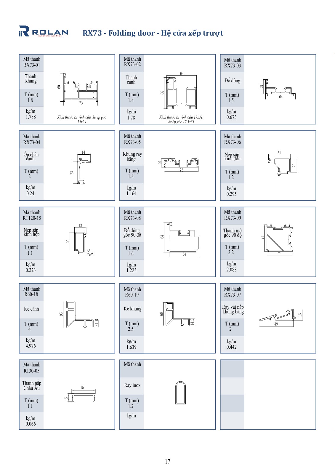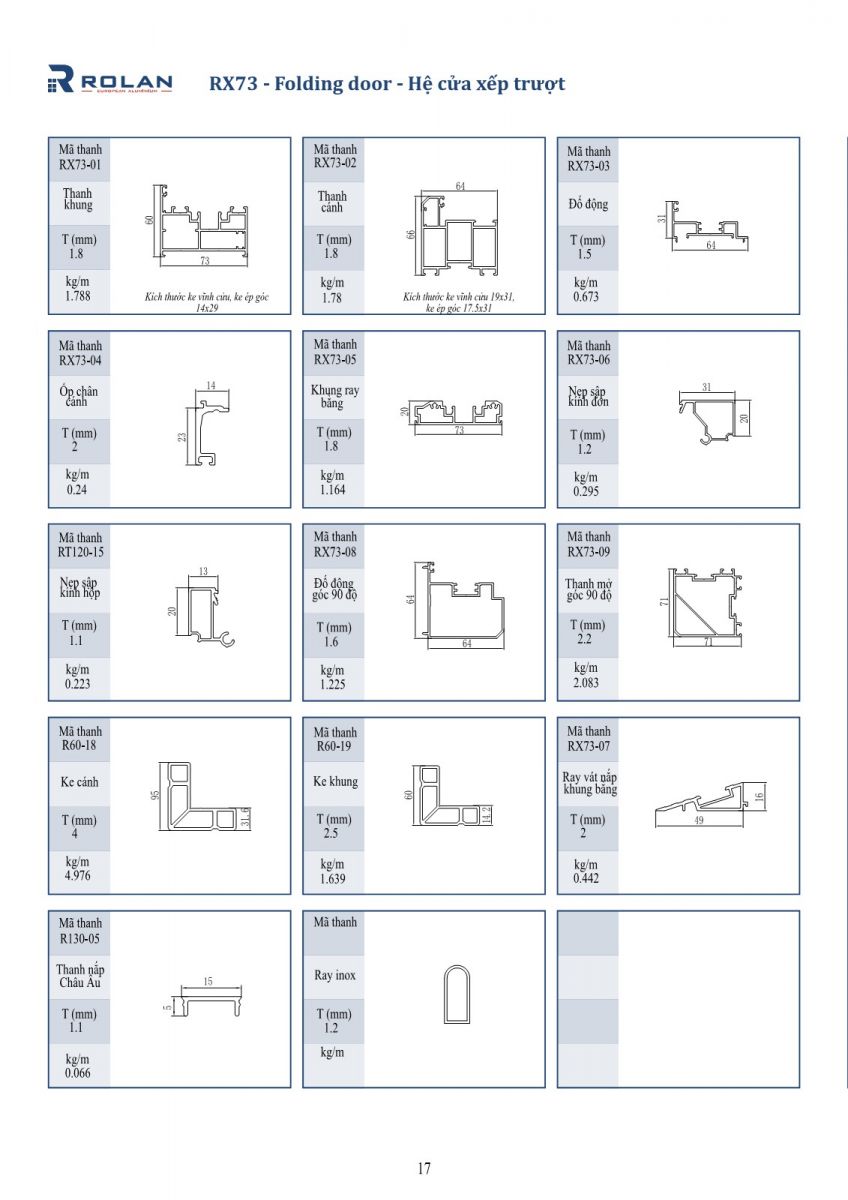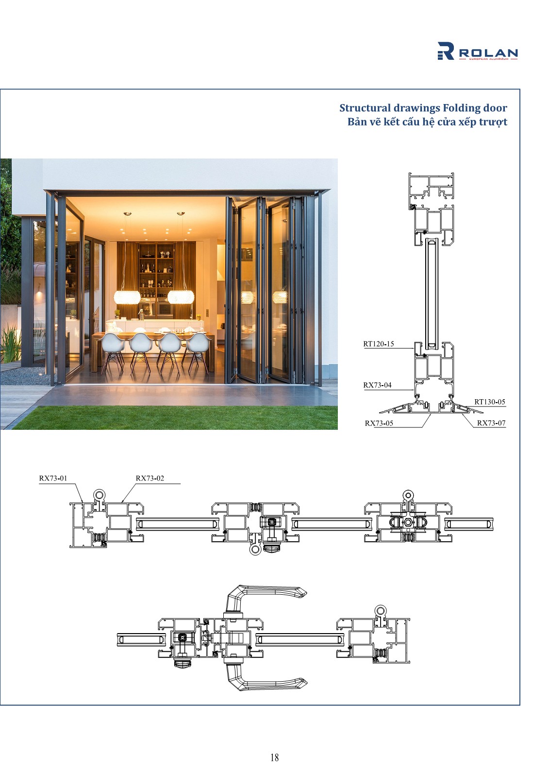 RX73- Hệ cửa xếp trượt nhôm Rolan