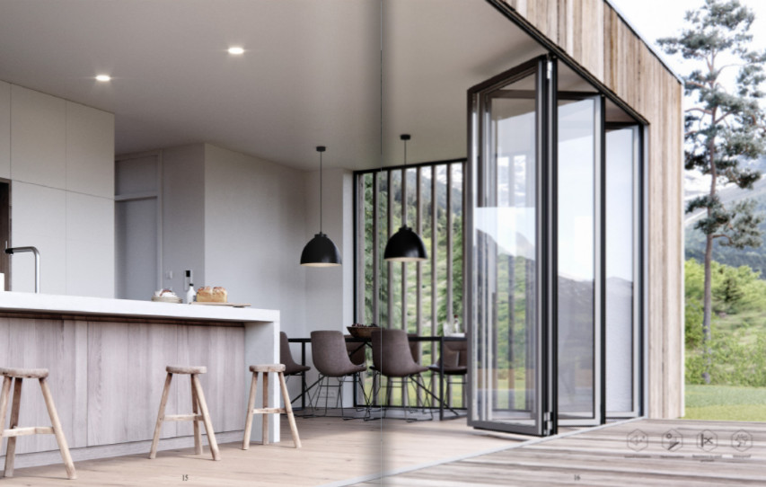 Hệ cửa xếp trượt RX73 với các cánh hoạt động linh hoạt giữa khả năng vừa trượt, vừa gấp trên cùng một hệ khung, mở được tất cả các cánh về một bên, mở hết được toàn bộ không gian.